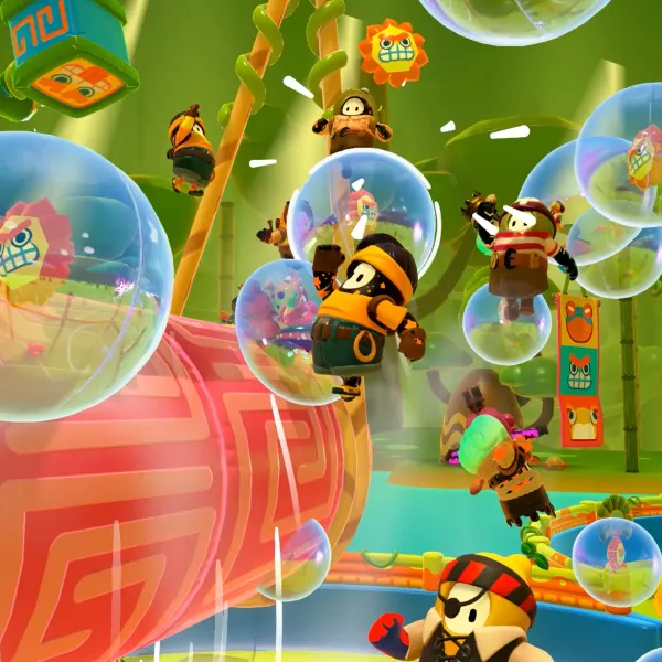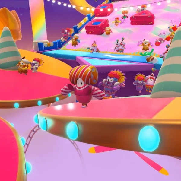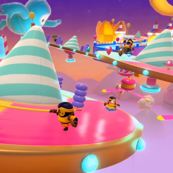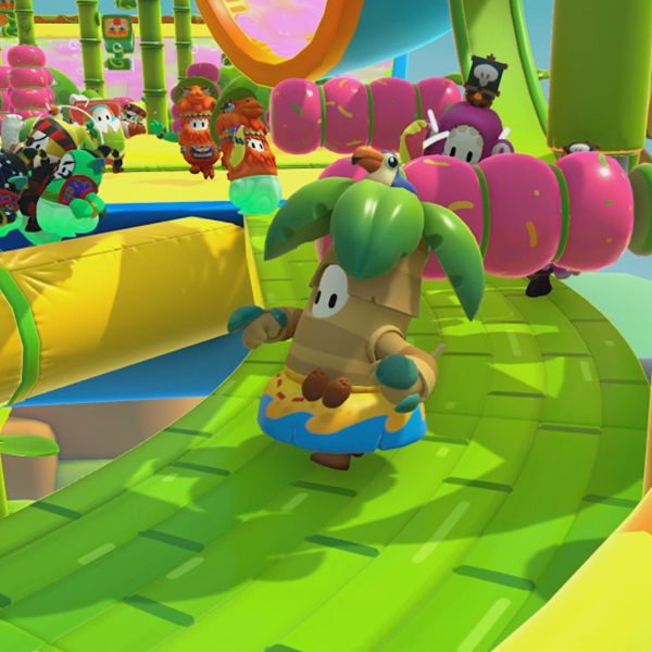 Fall Guys: Ultimate Knockout is a battle royale game where up to 60 players control jellybean-like creatures and compete against each other in a series of challenges, such as obstacle courses or tag. Many different courses have been added since the game was first released. The minority are team-based, while many require not falling into slime on a spinning, floating platform with obstacles designed to knock players in and waiting for a specified number of others to be eliminated, but most are obstacle courses that involve players racing to get to the finish line as soon as possible, lest they are eliminated. Fall Guys: Ultimate Knockout is a new one-on-one battle royale game developed by Mediatonic and published by Devolver Digital. The game has a chaotic environment with a community of gamers that have a love for all things video games. The game has a seasonal change, which adds more challenges and changes the game's theme.