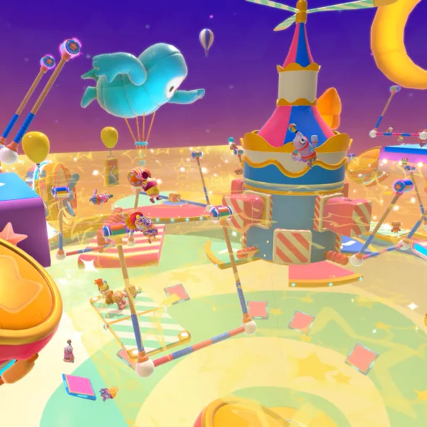 In Fall Guys: Ultimate Knockout, the player starts off with 40 jellybean-like creatures on a platform and the goal is to survive by not falling into slime and waiting for a specified number of other players to be eliminated. The gameplay is very chaotic and is a platform battle royale game with a lot of different obstacles to avoid. There are a lot of different challenges that the player can compete in, such as obstacle courses or tag.