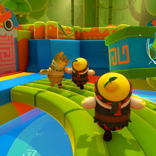 The game is designed to be chaotic. Up to 60 players control jellybean-like creatures and compete against each other in a series of challenges, such as obstacle courses or tag. Many different courses have been added since the game was first released. The minority are team-based, while many require not falling into slime on a spinning, floating platform with obstacles designed to knock players in and waiting for a specified number of others to be eliminated, but most are obstacle courses that involve players racing to get to the finish line as soon as possible, lest they are eliminated.